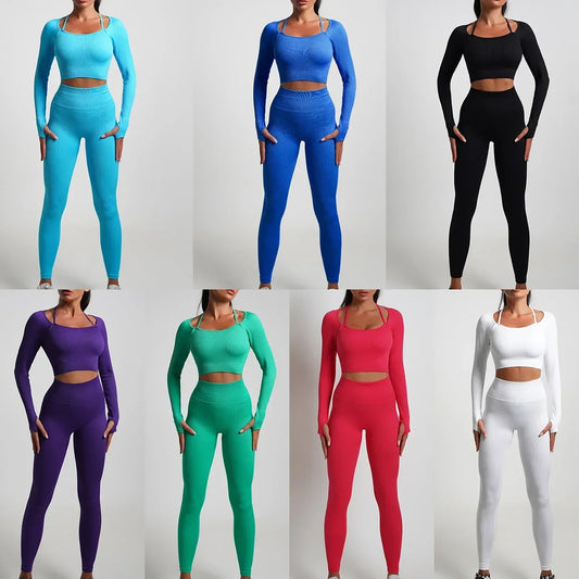 Seamless High-Waist Yoga Set – Workout Leggings & Crop Top for Women